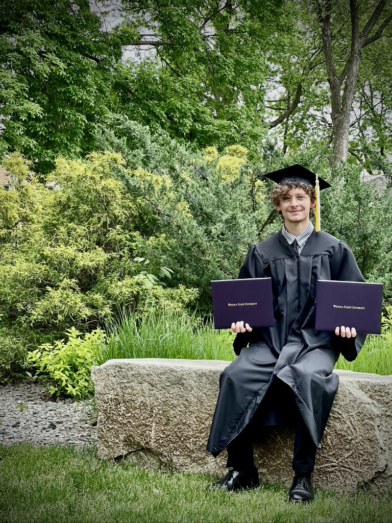 I graduated from Winona State University in 2021 with two undergraduate degrees: a BS in Computer Science (Human-Computer Interaction concentration) and a BA in I-Design (Technology & Interactivity concentration).